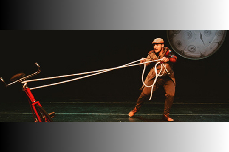 Un espectacle de circ artesanal: la bicicleta artística i la roda Cyr, vestida de lluna, fan el circ.