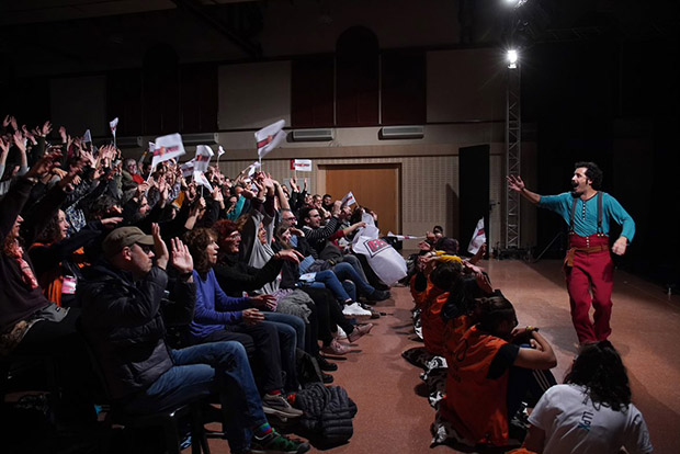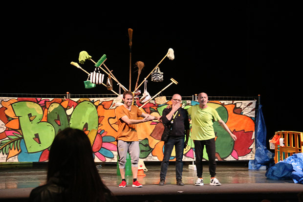 Dissabte no hi ha excusa. La Mostra es desplega amb tot el seu esplendor. Des de primera hora, programadors i públic es barregen a les sales i a les places desitjant veure bons espectacles. Uns per contractar-los, els altres per gaudir-los. I enguany, les estrenes arribaven a la vintena. Des de Planeta M.Art de Marcel Gros a primera hora, fins a Leonardo, somnis i malsons de Plasticiens Volants, que era la primera vegada que portaven aquest espectacle de gran format a Catalunya. Entremig, La Pera Llimonera també va estrenar el seu Baobab, un arbre, un bolet i un esquirol igual que la Cia La Tal amb Italino Grand Hotel. Dissabte va ser un dia d’estrenes, però també de jocs, d’espectacles itinerants i també del nostre photocall al carrer.