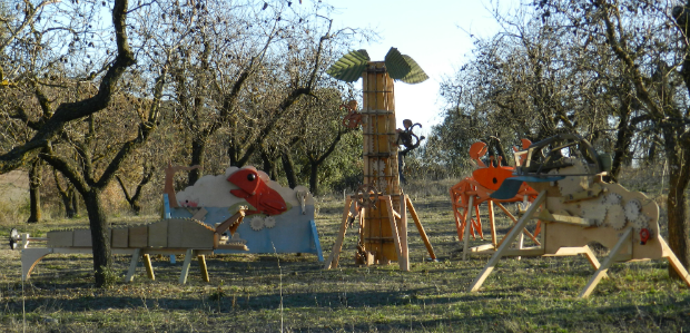 Doncs vam idear el que ara són Els amics d’en Crusó, una instal·lació que barreja autòmats i joc. El joc és el catalitzador de la instal·lació, ja que en jugar i interaccionar, el públic acciona els mecanismes que fan moure els autòmats. La idea era fer una instal·lació que pogués anar a tot arreu, inclosa la festa major del nostre poble, una petita localitat de 100 habitants, i que tothom, grans i petits, poguessin trobar el seu espai. És per això que vam fer la col·lecció d’autòmats Els amics d’en Crusó, que va guanyar el premi a Lleida.