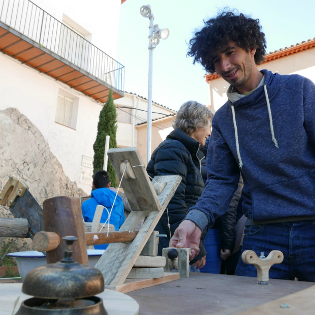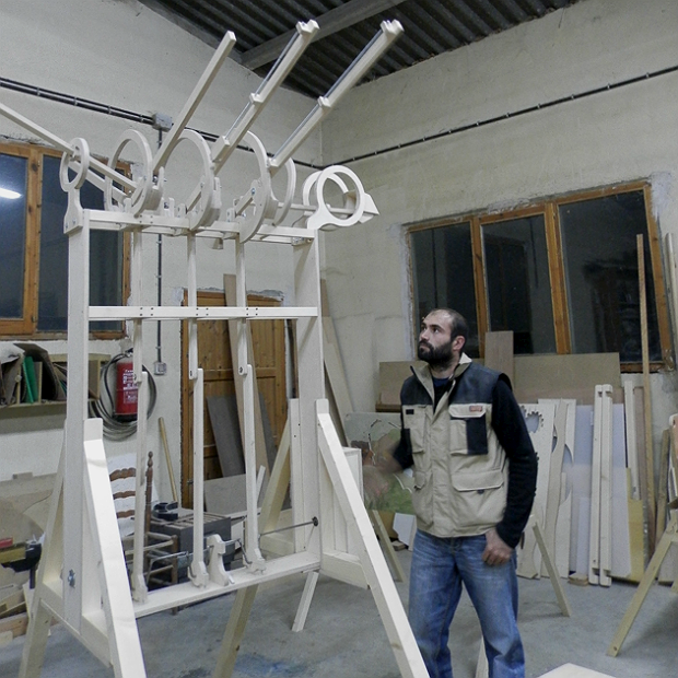 En tenim una llibreta plena! Tenim un carretó d’instal·lacions que anem mastegant molt. L’atelier ha canviat de forma moltes vegades, fins arribar a la línia creativa que ens agradava. El que ens costa més és trobar la idea i pensar com es pot materialitzar, que no pas fer-ho. Com que ho hem pensat tant, materialitzar allò que tenim al cap és fàcil. Ho treballem tot molt a nivell conceptual, tant el joc com els mecanismes, perquè no som enginyers i li hem de donar moltes voltes. Allò que fem, abans ens ho hem imaginat molt per comprovar que funciona. En Joan Rovira em va dir un dia: “Si t’imagines que una cosa es pot trencar, algun dia es trencarà” i té tota la raó. Nosaltres fem proves amb la gent del poble. L’experiència és un grau, ja saps algunes coses sobre l’ofici, però cal fer proves. Per fer L’atelier vam fer un pregó demanant a la gent del poble si tenien mobles en desús, que els els passaríem a buscar. Una gran part de L’atelier està fet amb aquells mobles i quan els vam mostrar la instal·lació, la gent tenia la curiositat de venir a veure què havia passat amb aquella tauleta de nit o aquell tocador.