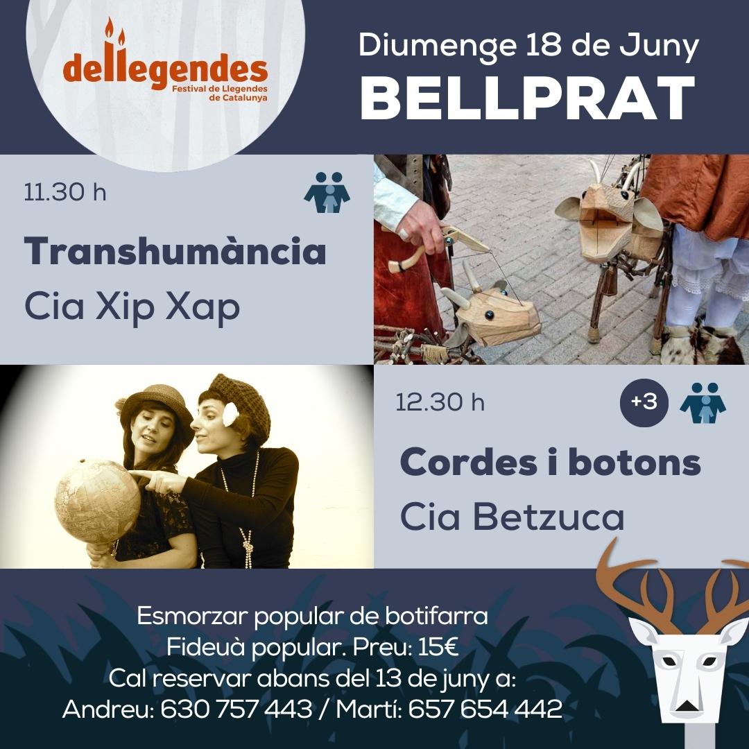 El municipi de Bellprat acollirà una jornada amb dos espectacles, esmorzar popular i fideuà per dinar. La cita serà el diumenge 18 de juny a la placeta Catalunya. El dia començarà amb un esmorzar popular de botifarra, les 11.30 hores tindrà lloc l’espectacle “Transhumància” de la companyia Xip Xap, a les 12.30 hores l’espectacle “Cordes i botons” de la companyia Betzuca i al migdia fideuà popular.