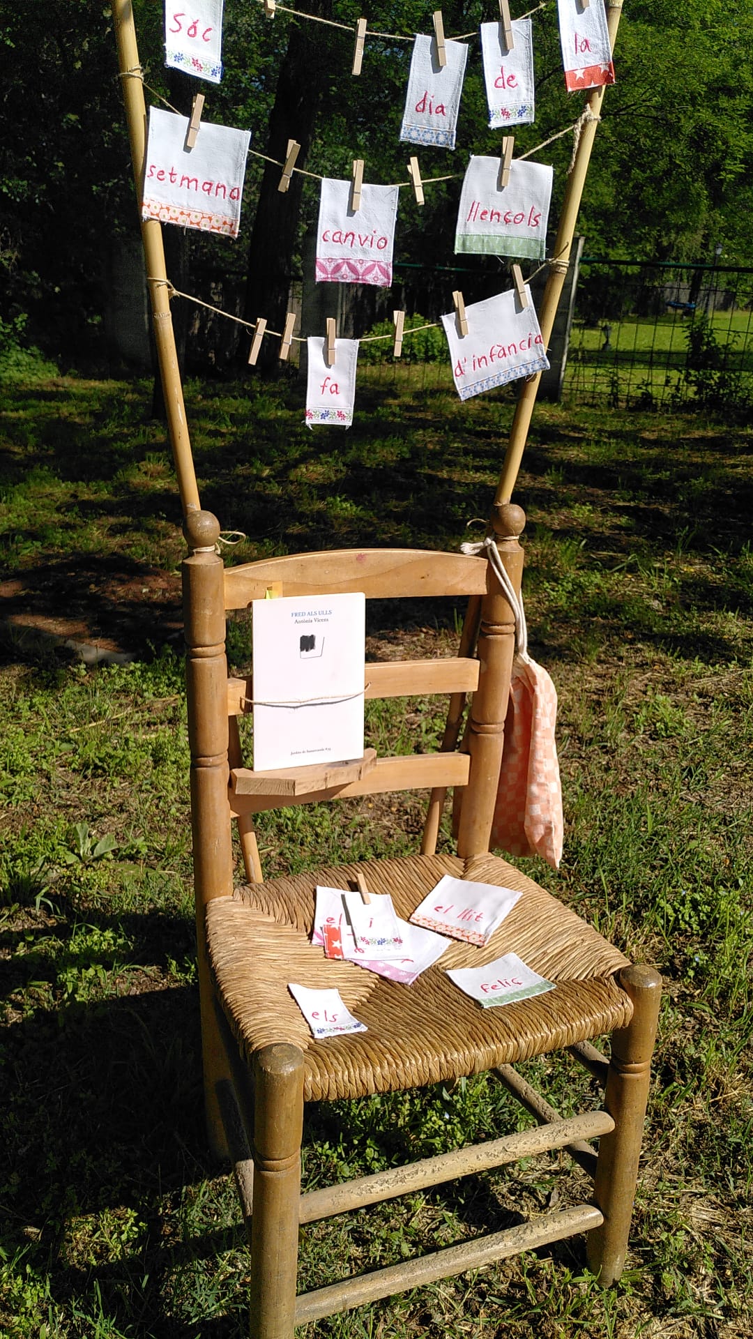 Una cadira, una autora, un vers, un univers. Aquesta és la premissa de la instal·lació. ‘Cada vers ens ha suggerit un entorn plàstic, físic, al voltant d’un element quotidià: la cadira, que pren diverses formes i que ofereix al joc una estructura bàsica. També la tipografia i les paraules objecte estan pensades dins aquest context poètic i prenen rellevància plàstica’.