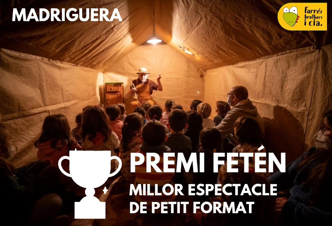 Premi FETEN al millor espectacle de petit format, per MADRIGUERA, que és com hem traduït al Tabalet. Els que ens dediquem al teatre infantil o a llenguatges minoritaris com els titelles o el teatre d’objectes, tenim assumit que treballem a la perifèria. El reconeixement del públic sempre hi acostuma a ser, per l’empatia que genera la proximitat, la cosa petita, lo juganer. Però de tant en tant també s’agraeix rebre reconeixements ‘grossos’ com un premi FETEN.