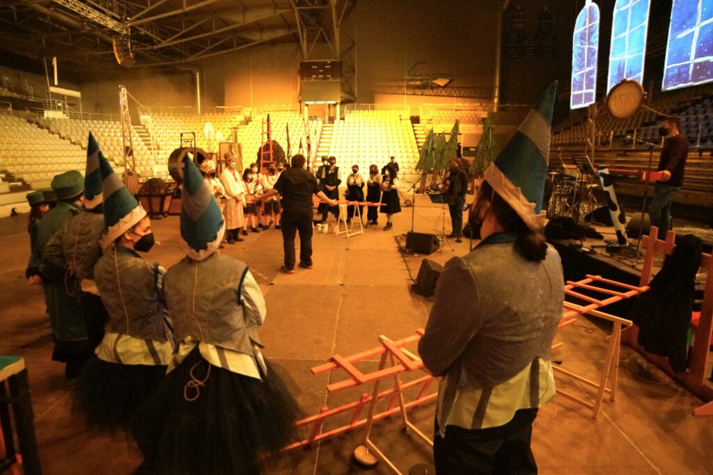 Imatge d’alguns dels professionals de la Factoria dels Reixos ultiman els detalls abans d’una de les funcions d’aquest any. Foto: Mario Gascon – Paeria