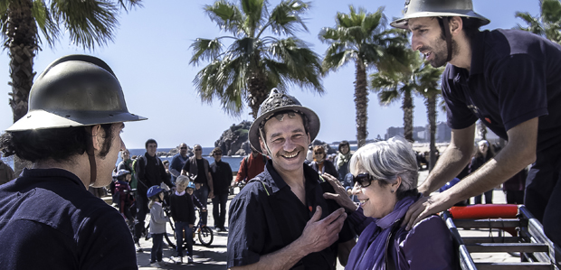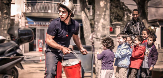 Un espectacle refrescant i absurd, basat en la improvisació amb el públic. Tres bombers al servei de la població, sempre preparats per intervenir, amb un afany de salvar fins i tot a qui no li cal. Els detalls més insignificants del territori (una picor al nas o una camisa que no entra bé als pantalons) seran motiu d’alerta per a aquesta brigada mòbil que patrulla la via pública, proveïda d’un vehicle-cisterna motoritzat per desplaçar-se i un repertori d’accions basades en l’absurd i la tendresa.