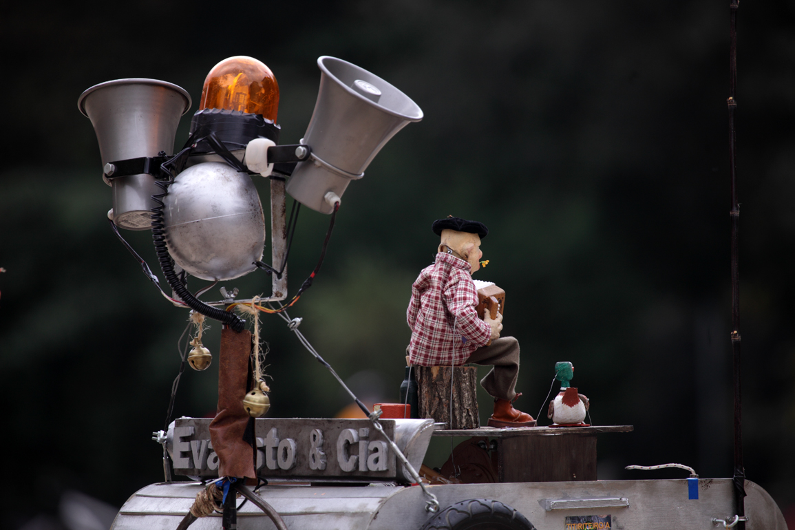 Espectacle itinerant on la interacció entre Evaristo, Antonio i el públic ens delecta al seu pas, fent-nos riure i viure un món de fantasia.