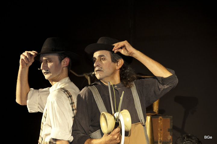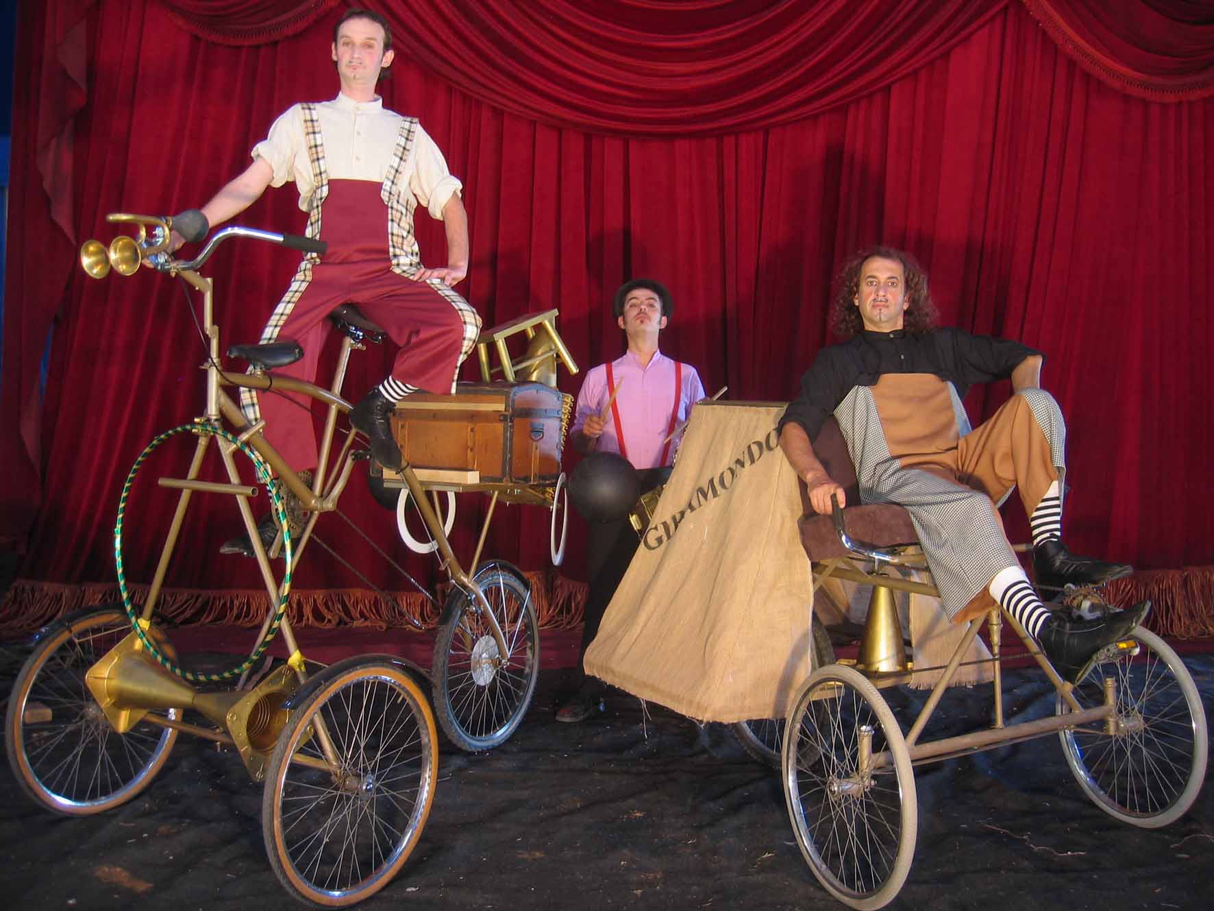 Des d’Itàlia han arribat a la ciutat dos comediants a sobre dels seus estranys tricicles. Després d’haver recorregut pobles i ciutats, aquests dos personatges (una mica desfasats en el temps) convoquen a petits i grans a la plaça, en un carrer o en un teatre a veure el seu espectacle.