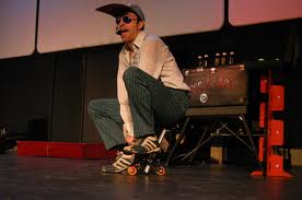 Un personatge incombustible, El Professor Karoli, es desplaça dins d’una sola roda amb motor.