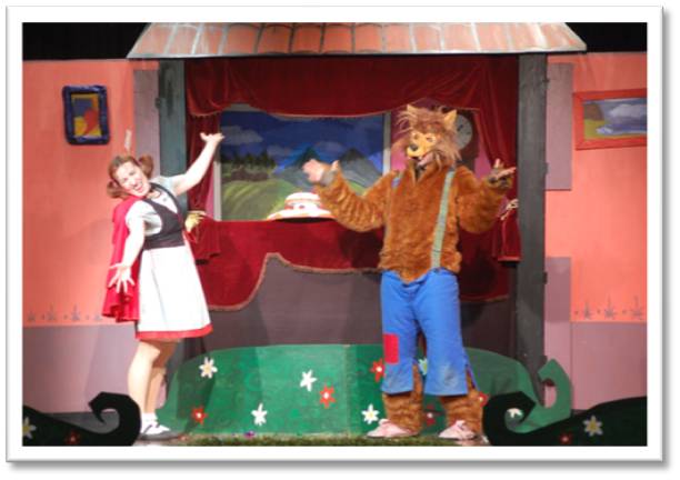 Tot creuant el bosc, la Caputxeta coneix un llop que l’enganyarà per ser el primer en arribar a casa de l’àvia i menjar-se tots els pastissos… i qualsevol altra cosa que trobi pel mig.