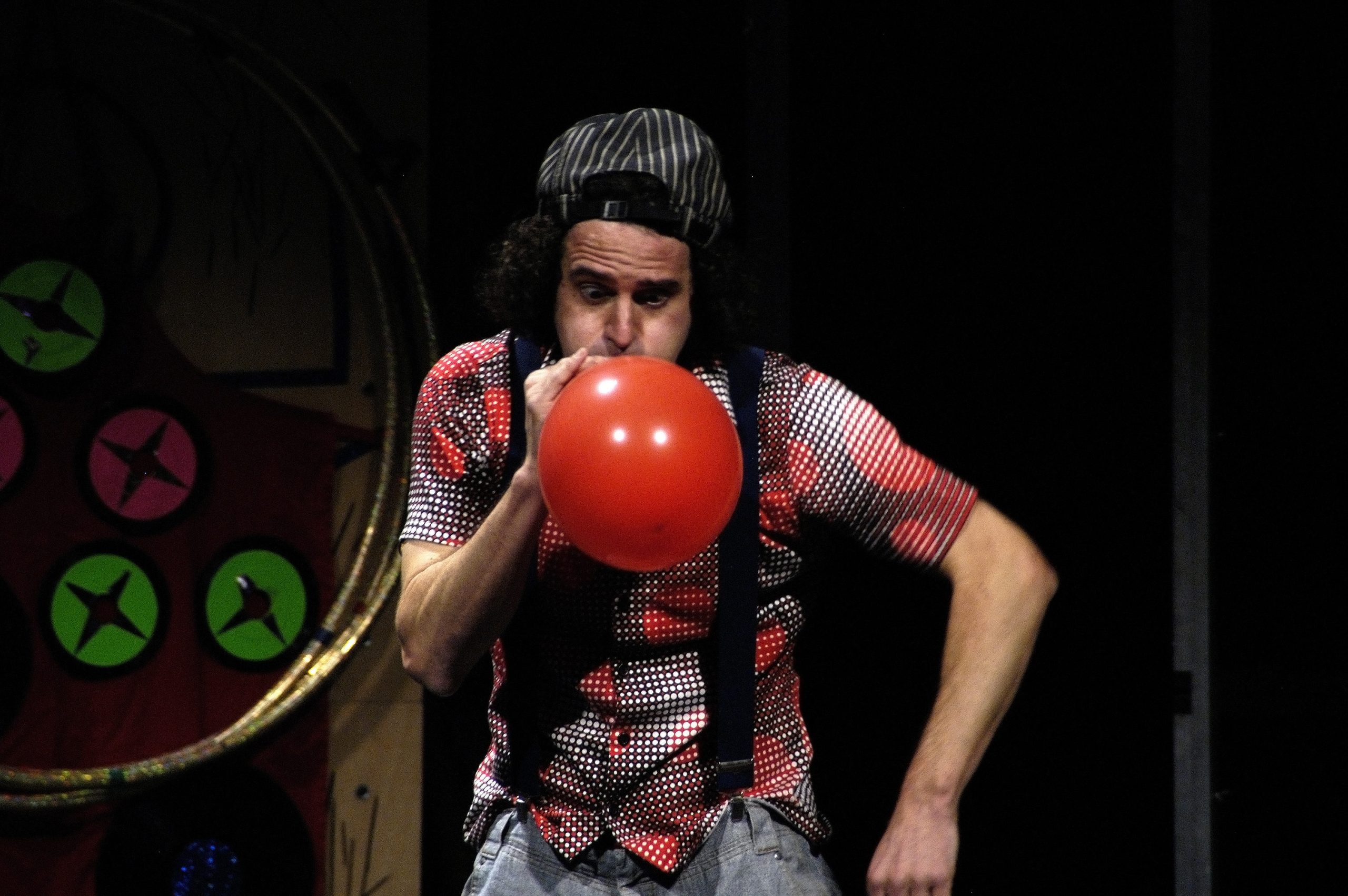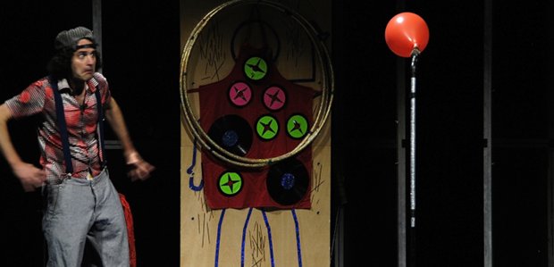 Un espectacle de circ, clown i teatre físic. Un clown i un Dj a escena.