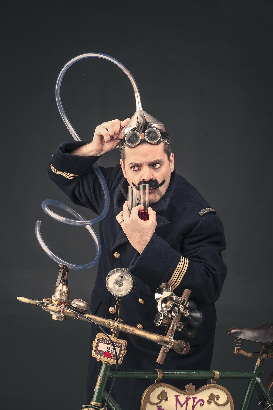 El protagonista Pietro Pampolino, és un personatge extravagant que viatja amb el seu vehicle, una espècie de bicicleta que transporta un “artilugi- acoplat”: