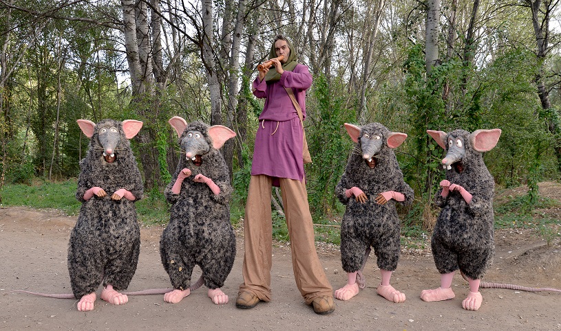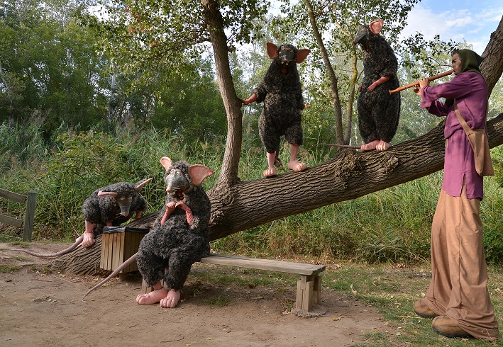 Les rates han envaït la ciutat. Apareixen de tot arreu: salten dels arbres, surten de les cloaques i els contenidors, i es troben al bell mig del carrer a plena llum del dia… Ja no s’amaguen i són gegants! Han pres la ciutat i no hi ha mata-rates que serveixi. Només una persona pot endur-se aquesta plaga: un flautista que arriba d’un país molt llunyà. Ara que, ben mirat, semblen unes rates divertides!