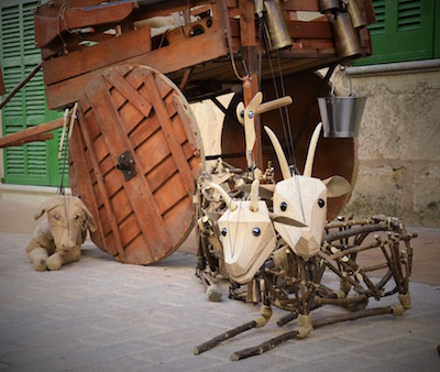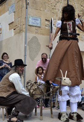I així són els nostres pastors, porten el seu ramat allà on el públic està reunit per gaudir del teatre de carrer. Pastors, cabres, i el nostre gos són els personatges principals. Però potser tu també acabaràs sent protagonista. Saps munyir? I que tal fas de llop?