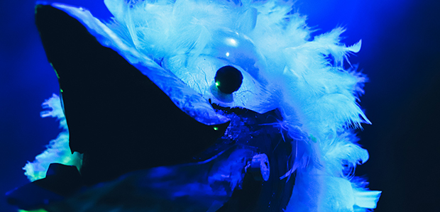 La bestiola antagonista de la història. Foto: Eva Balcells.EF: En les funcions prèvies, has notat aquest canvi de dur la música en directe?Esther: I tant! El públic queda enganxat, però és que també busquem molt la interacció amb el públic -un signe d’identitat propi- en molts moments, també a nivell musical. En diversos moments demanem al públic que segueixi el ritme del tamborí, que piqui de mans, els incitem a cantar la tornada d’alguna cançó i busquem que s’impliquin, no només que escoltin, també que ho visquin.