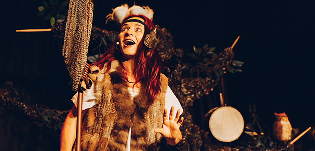 Esther Miñarro interpreta l’Atrapasons. Foto: Eva Balcells.EF: Com l’heu muntat l’espectacle?Esther: Doncs primer va sorgir la idea dels instruments i després vam idear una història que permetés encaixar-ho tot. El fet que fossin instruments d’arrel ens va inspirar i de seguida vam pensar en un arbre amb unes grans arrels, a redós de les quals es troben els instruments. L’escenografia és molt impressionant en aquest sentit. A mesura que va transcorrent la història, anem presentant els instruments. Muntar-ho tot plegat va ser força fluid, però vam haver de fer marxa enrere en un parell d’ocasions.