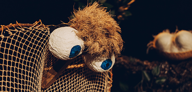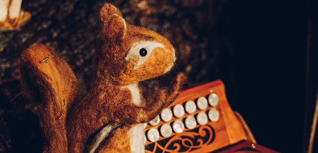 Un dels personatges que habiten el bosc on es troba l’arbre dels instruments. Foto: Eva Balcells.Sergi: Per acabar amb això de la música, també juguem amb el mode major, el mode menor i hem introduït el mode grec, com el dòric o el locri, que són els modes mediterranis. Però també juguem amb els ritmes, amb el compàs d’amalgama o el 7/8. Això ho hem introduït perquè per a mi és tracta de ritmes molt nostres, molt mediterranis. Creiem que és la manera d’ensenyar de forma amena als infants els instruments, les armonies i els ritmes que existeixen, que crec que poca gent coneix.