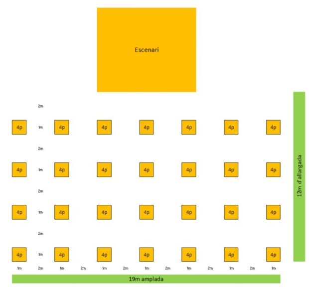 Plànol de com es distribuirà el públic, per nuclis familiars.