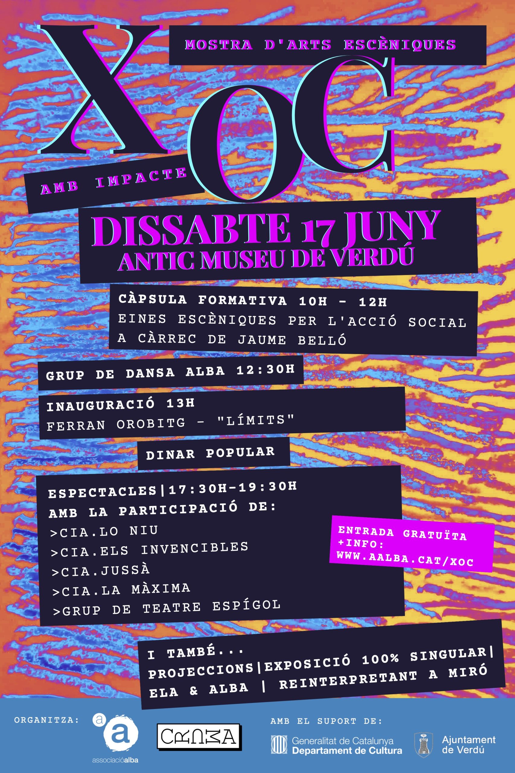 L’Associació Alba, en col.laboració amb CRUMA, l’Escola d’Arts Escèniques de Tàrrega, van presentar ahir la Mostra d’Arts Escèniques amb Impacte, XOC, amb una clara voluntat de sacsejar i generar un impacte en les persones a través de l’art i la cultura des d’una mirada inclusiva i reivindicativa.