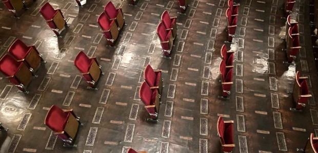 Vista del pati de butaques de la sala gran de la Berliner Ensemble, adaptat a la normativa.