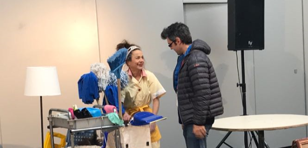 Wet Floor va ser l’encarregat d’obrir la jornada encara que en el cronograma aquest paper li corresponia a El Secret de la Nana. L’espectacle de la Cia. Anna Roca no va tenir la mateixa sort dels que vam baixar des de Lleida davant del pronòstic meteorològic i malauradament la neu li va impedir assistir a la cita, segons ens van explicar els conductors de la jornada, la Cristina Garcia i el Jordi Pedrós de la companyia Campi Qui Pugui, qui van ser els encarregats de presentar els espectacles del programa.