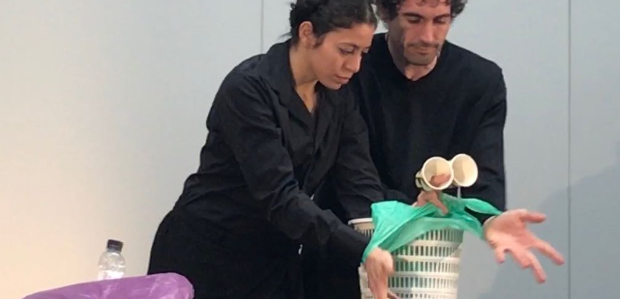 La parella de Zero en conducta, formada per José Puchades i Julieta Gascón, va ser l’encarregada de reprendre l’agenda amb un entranyable espectacle que barrejava la mímica amb els titelles. És possible que els que no havíem vist mai a La Poubelle Plus Belle ens haguéssim assegut a la sala una mica escèptics en trobar-nos amb un escenari únicament compost per una taula plena d’escombraries, literalment, però la “comèdia tràgica molt còmica i poc tràgica”, com descriuen ells mateixos el seu espectacle, va tenir la màgia de convertir aquestes escombraries en adorables personatges, enamorant al públic i deslligant els aplaudiments possiblement més forts del matí.