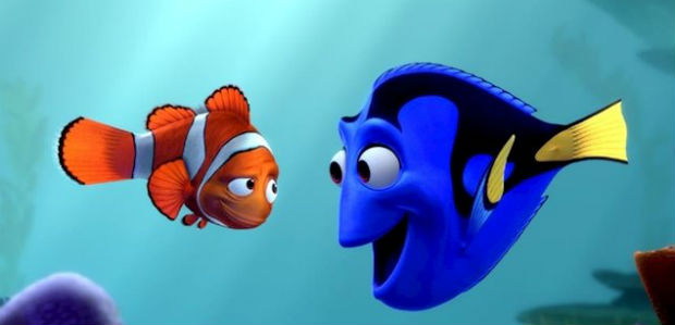 Un fotograma del film Buscant en Nemo, amb la Dory, un peix de memòria immediata limitada.