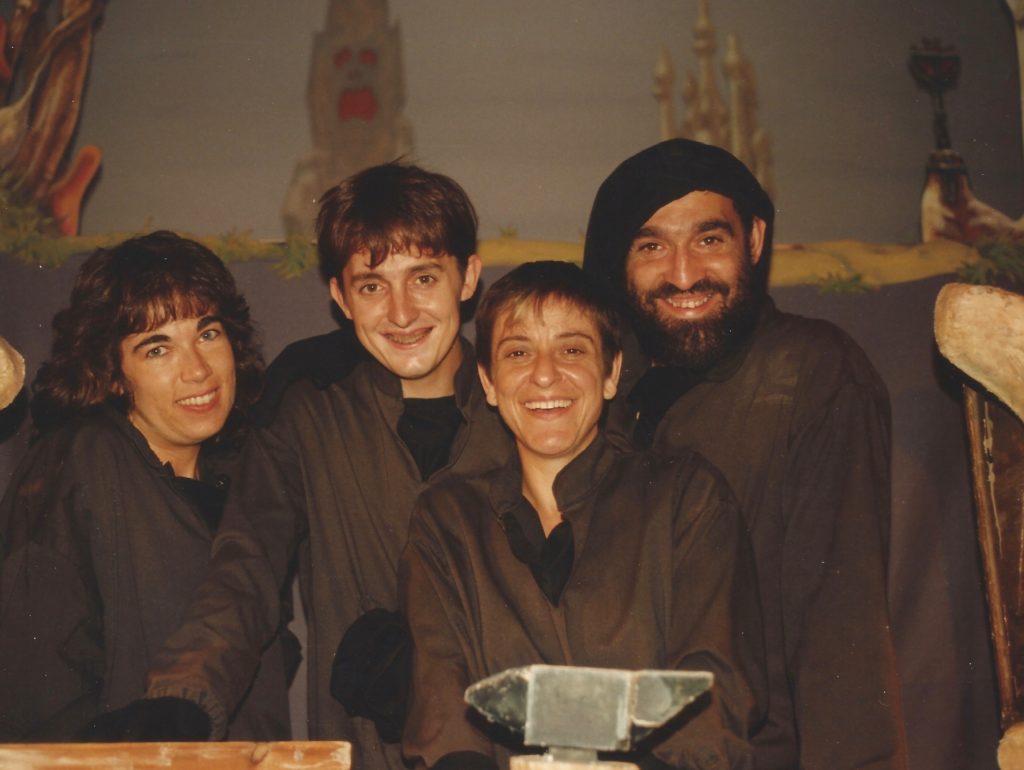Ramon Molins, el segon per l’esquerra, amb la Mar Bifet, també a l’esquerra i el Paco i la Pilar dels magnífics Titiriteros de Binéfar, en el seu pas pel Centre de Titelles de Lleida..Com va evolucionar la companyia, doncs? Perquè ara només quedes tú…