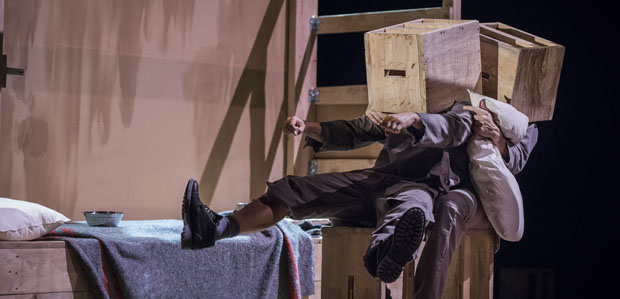 L’espectacle és molt minimalista. Els personatges juguen a través del treball d’actor, del mim i, en algun moment, també del pallasso. Hi ha poc atrezzo i és l’escenografia la que pren molta contundència. “És d’una fusta crua, molt real, i té aquesta cosa de caixa que s’obre i es tanca. No volem anar a buscar la part realista de la presó amb els ferros, sinó que estan tancats a la caixa i, en els moments en què s’obre, el públic també respira. El moviment dóna llibertat, ritme”.