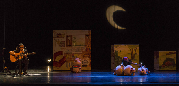 Aquest és el punt de partida d’una aposta escènica sens dubte valenta, ja que parlar de les pors a espectadors tan petits no és gens fàcil. D’una banda exposen la por objectiva, que seria el perill davant la possibilitat que el llop se’ls mengi i, d’una altra banda, fan que els porquets s’enfrontin a les pors imaginàries. Però, com ho han fet?