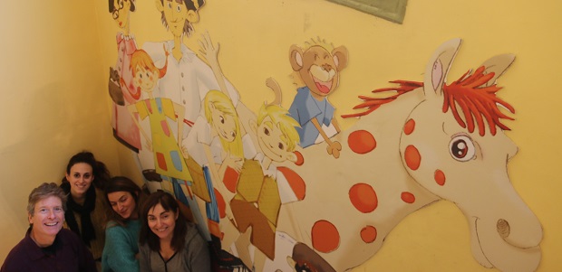 L’equip de Lazzigags, a l’entrada del seu local a Barcelona.