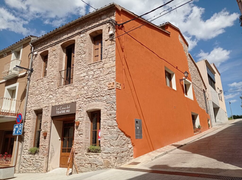 Mira, al novembre farà set anys que vam iniciar aquest projecte, es va inaugurar el 2015! Feia molts anys que trebàllavem com a companyia de teatre fent bolos, girant per tot arreu, però al nostre poble potser només ens veien actuar un cop a l’any… Teníem moltes ganes de treballar de cara al poble, pels veïns i les veïnes, amb la gent del voltant. Aleshores va sortir l’opció d’arreglar un graner que hi ha aquí al mig de Sant Martí de Tous, un antic magatzem de gra on els pagesos guardaven el blat i era un punt d’intercanvi i de trobada entre la gent del camp. Aquest magatzem portava molts anys tancat i havia quedat pràcticament en l’oblit. Va sortir l’oportunitat d’arreglar-lo i convertir-lo en el nostre espai d’assaig i ja ho vam fer pensant que no seria només un local per assajar nosaltres sinó que seria per fer-hi activitats pel poble. El vam arreglar, el vam transformar en teatre i en diferents espais d’assaig. Després l’any 2020 vam arreglar un altre espai que ha servit de residència i això ha permès tenir més companyies, augmentar la programació, fer més activitats… Ha fet que La Casa del Teatre Nu sigui el nostre espai però sobretot un lloc de creació, un espai obert de creació.